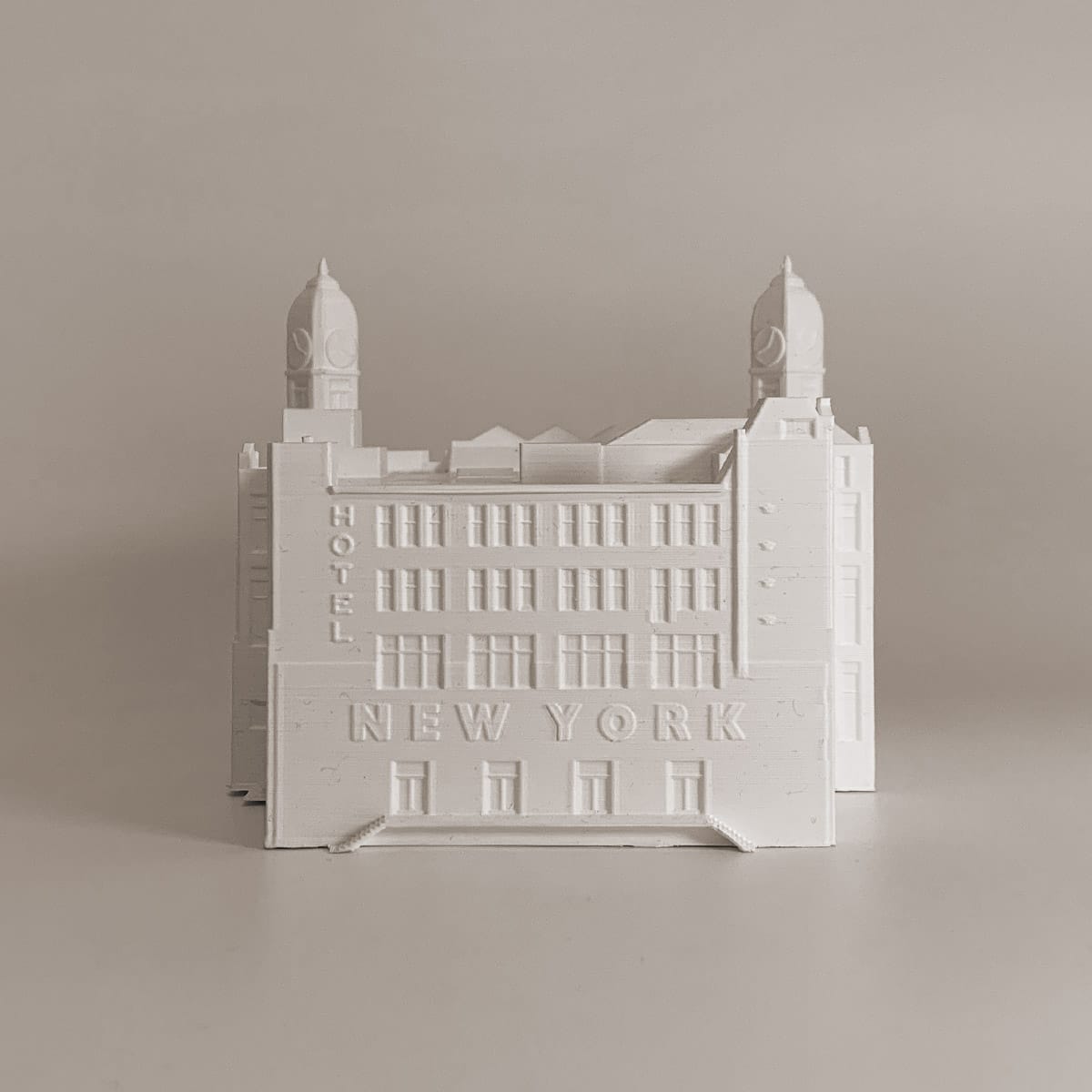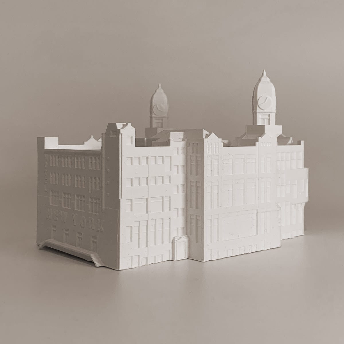 In 1620 the Pilgrim Fathers left (fleeed) from Delfshaven to America. After that, an ever-increasing group of emigrants and fortune seekers traveled to America via Rotterdam. The NASM was founded in 1873 (which had already established a hotel with the name Hotel New:York on approximately the same location of the later management building and current hotel, officially named Holland-America Line in 1896. Until the turn of the century of 1900, about a half a million people were transferred. On November 8, 1971, the last ship left the pier, after which the H.A.L. disappeared from Rotterdam and from New York. In the period 1901-1917, the management building was built on the Wilhelminapier by the architects Muller, Droogleever Fortuyn and Van der Tak.The massive block was somewhat illuminated with Art Nouveau ornaments and, a little later, the two modest but characteristic turrets.The building has the status of a national monument.